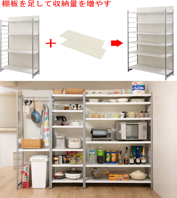 | 別売りの棚板を追加することで、収納量をアップすることができます。 |